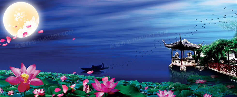 本作品内容为荷塘月色, 格式为 psd, 图片尺寸为1920 x 791, 作品中背景图片无需修改, 源文件无水印,可以直接使用, 欢迎使用熊猫办公。 如认为平台内容涉嫌侵权,可通过邮件:tousu@tukuppt.com提出书面通知,我们将及时处理。