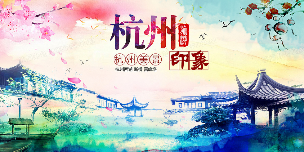 本作品内容为杭州印象水彩文化海报背景模板, 格式为 psd, 图片尺寸为5000 x 2500, 作品中背景图片无需修改, 源文件无水印,可以直接使用, 欢迎使用熊猫办公。 如认为平台内容涉嫌侵权,可通过邮件:tousu@tukuppt.com提出书面通知,我们将及时处理。