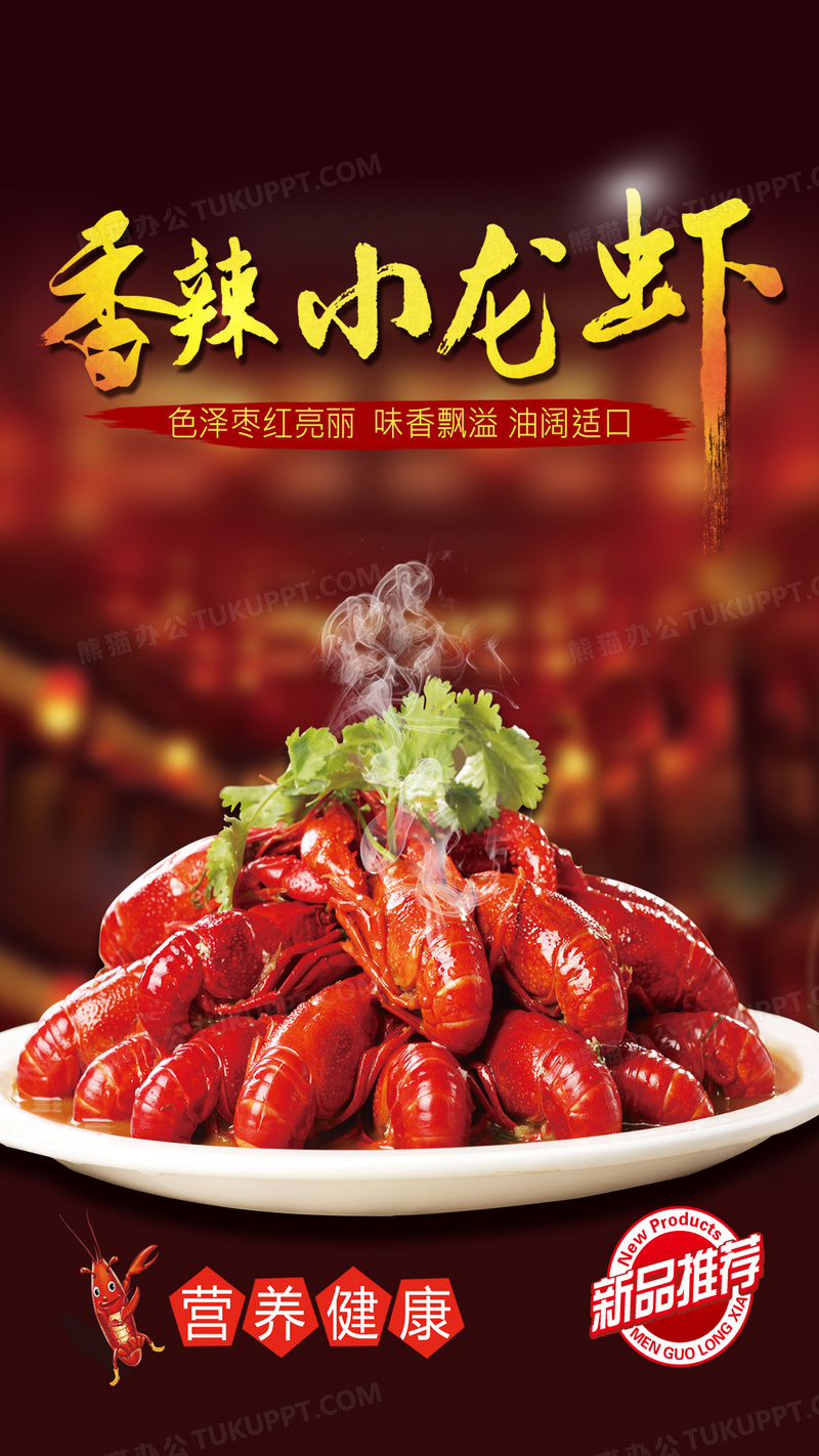 本作品内容为香辣小龙虾美食宣传H5背景源文件下载, 格式为 psd, 图片尺寸为1080 x 1920, 作品中背景图片无需修改, 源文件无水印,可以直接使用, 欢迎使用熊猫办公。 如认为平台内容涉嫌侵权,可通过邮件:tousu@tukuppt.com提出书面通知,我们将及时处理。