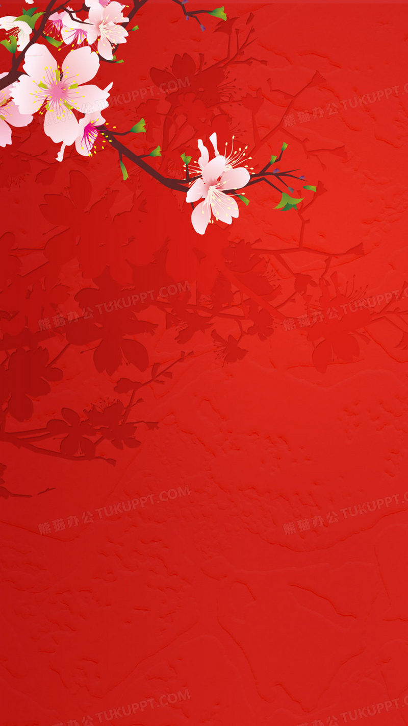 本作品内容为红色桃花中国风H5背景, 格式为 jpg, 图片尺寸为1080 x 1920, 作品中背景图片无需修改, 源文件无水印,可以直接使用, 欢迎使用熊猫办公。 如认为平台内容涉嫌侵权,可通过邮件:tousu@tukuppt.com提出书面通知,我们将及时处理。