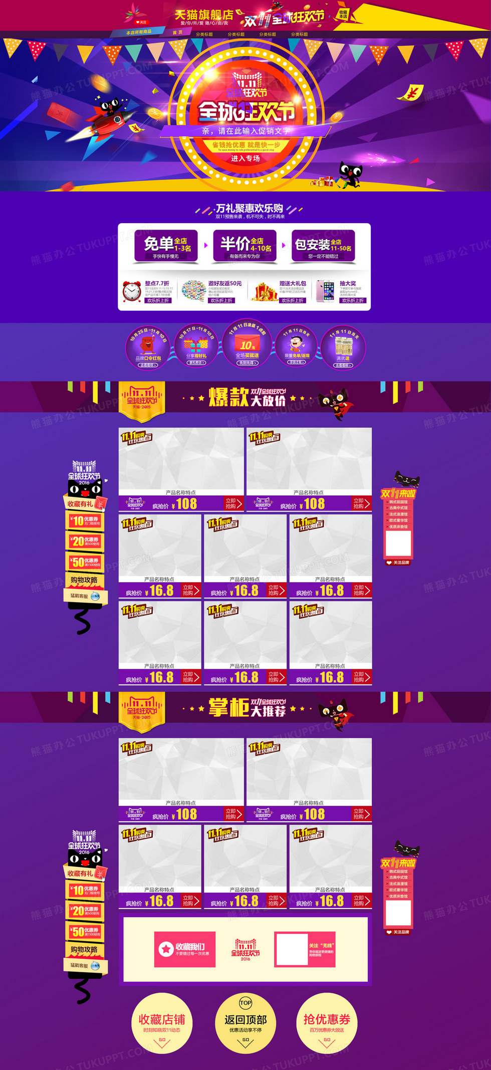 本作品内容为双十一首页背景模板, 格式为 psd, 图片尺寸为1920 x 4181, 作品中背景图片无需修改, 源文件无水印,可以直接使用, 欢迎使用熊猫办公。 如认为平台内容涉嫌侵权,可通过邮件:tousu@tukuppt.com提出书面通知,我们将及时处理。