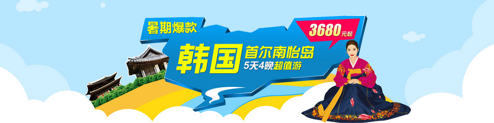 本作品内容为蓝色卡通小清新韩国旅游banner, 格式为 psd, 图片尺寸为1920 x 480, 作品中背景图片无需修改, 源文件无水印,可以直接使用, 欢迎使用熊猫办公。 如认为平台内容涉嫌侵权,可通过邮件:tousu@tukuppt.com提出书面通知,我们将及时处理。