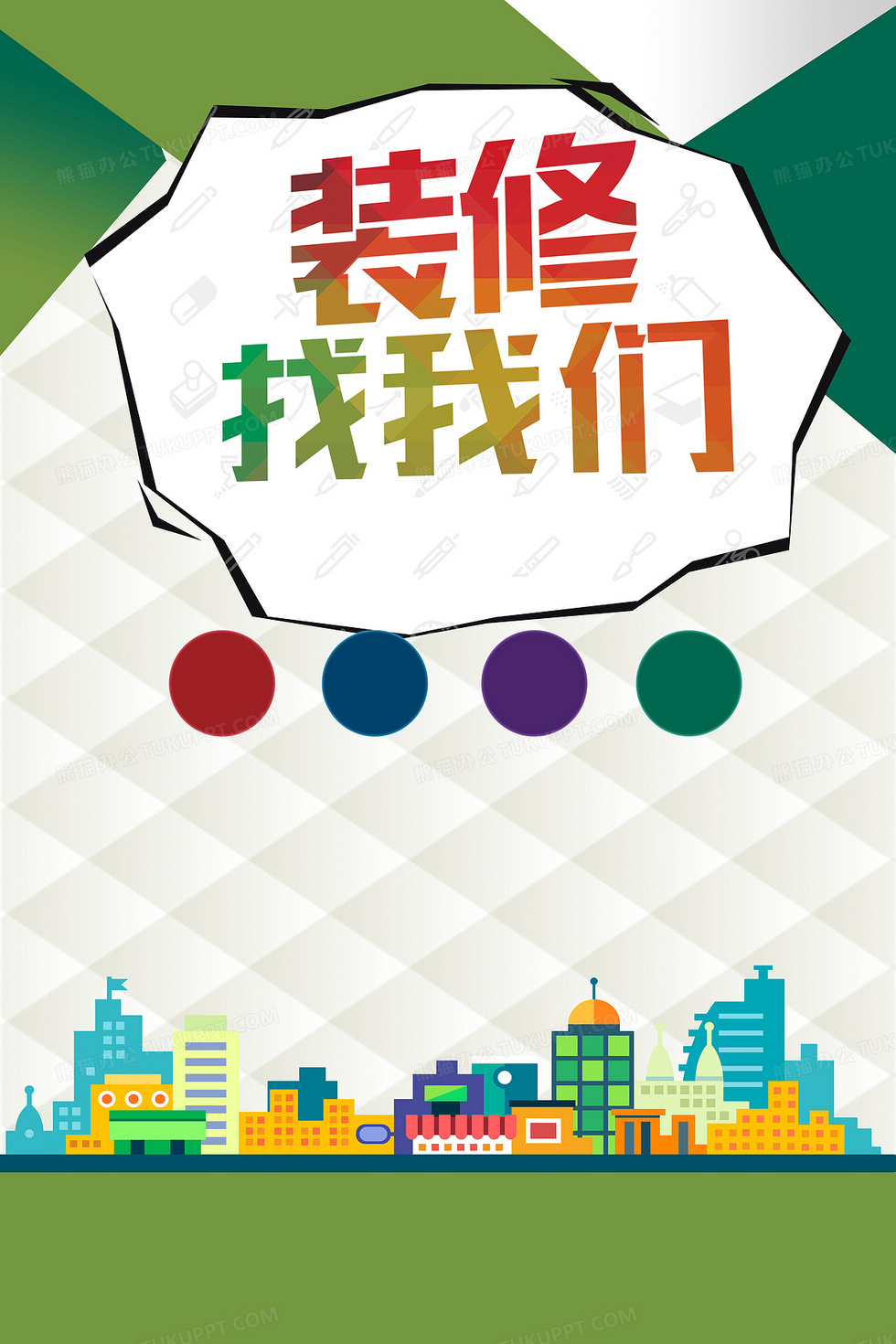 本作品内容为绿色装修公司宣传单, 格式为 psd, 图片尺寸为7087 x 10630, 作品中背景图片无需修改, 源文件无水印,可以直接使用, 欢迎使用熊猫办公。 如认为平台内容涉嫌侵权,可通过邮件:tousu@tukuppt.com提出书面通知,我们将及时处理。