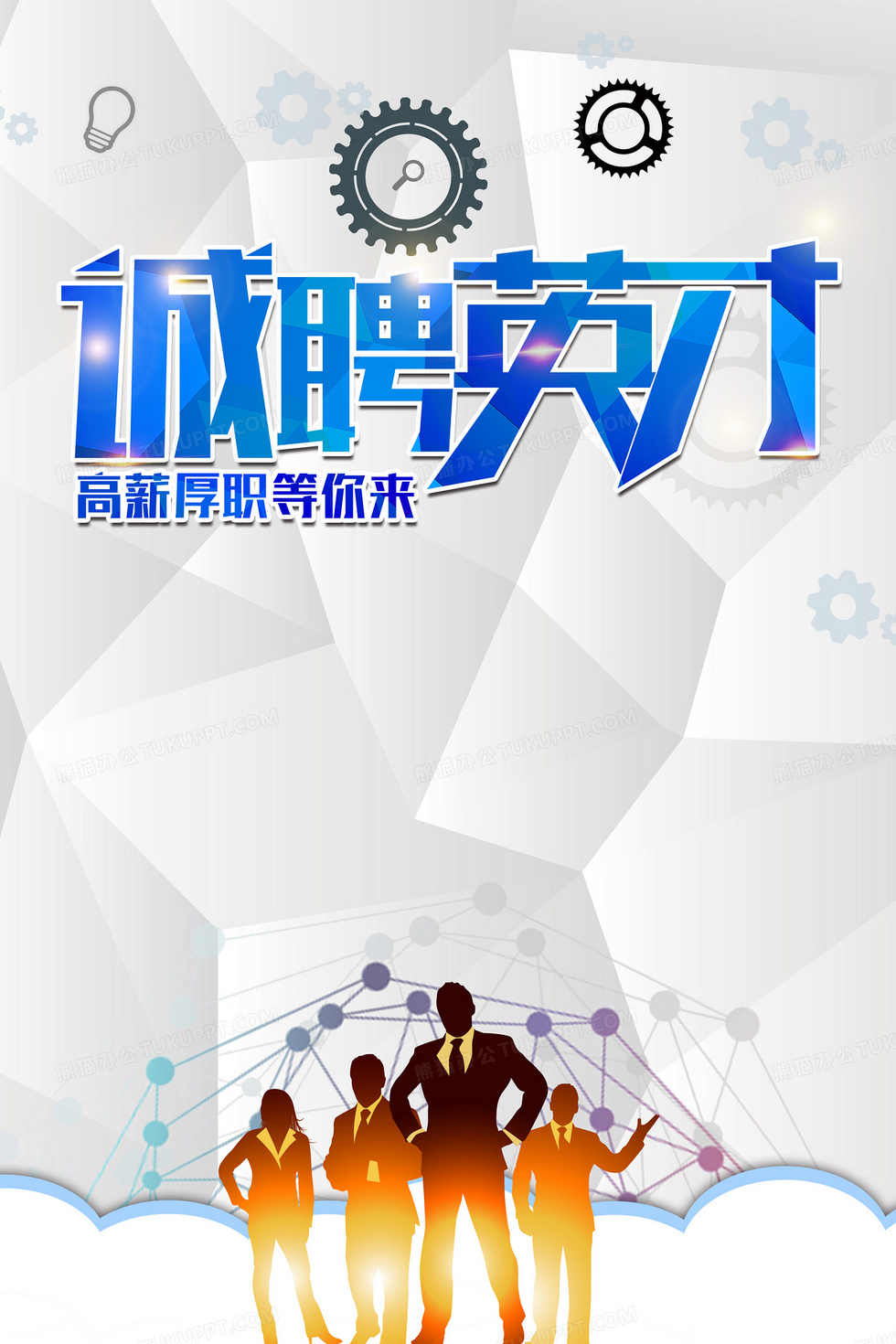 本作品内容为白色扁平招聘海报, 格式为 psd, 图片尺寸为3543 x 5315, 作品中背景图片无需修改, 源文件无水印,可以直接使用, 欢迎使用熊猫办公。 如认为平台内容涉嫌侵权,可通过邮件:tousu@tukuppt.com提出书面通知,我们将及时处理。