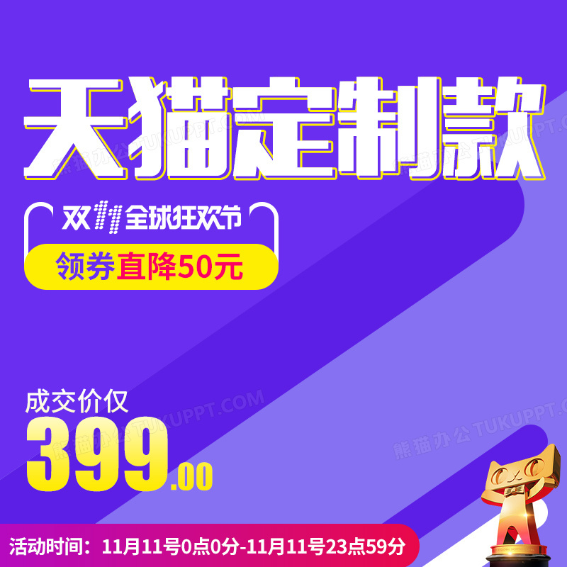 本作品内容为紫色天猫定制款主图, 格式为 psd, 图片尺寸为800 x 800, 作品中背景图片无需修改, 源文件无水印,可以直接使用, 欢迎使用熊猫办公。 如认为平台内容涉嫌侵权,可通过邮件:tousu@tukuppt.com提出书面通知,我们将及时处理。