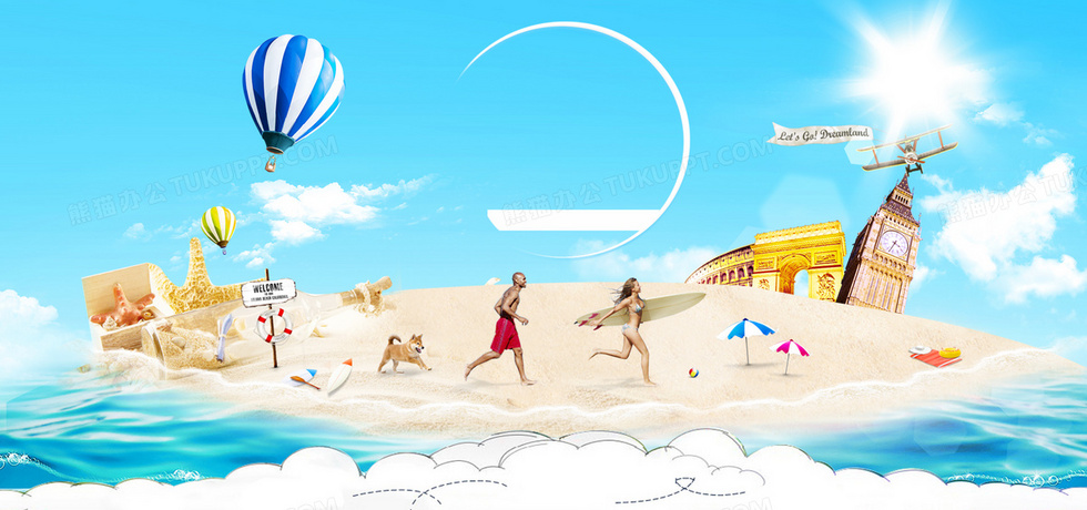 本作品内容为海岛旅游大气蓝色海报banner背景, 格式为 psd, 图片尺寸为1920 x 900, 作品中背景图片无需修改, 源文件无水印,可以直接使用, 欢迎使用熊猫办公。 如认为平台内容涉嫌侵权,可通过邮件:tousu@tukuppt.com提出书面通知,我们将及时处理。