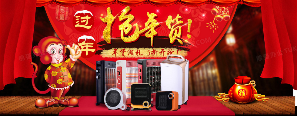 本作品内容为过年抢年货年货节电商主题海报, 格式为 psd, 图片尺寸为1920 x 750, 作品中背景图片无需修改, 源文件无水印,可以直接使用, 欢迎使用熊猫办公。 如认为平台内容涉嫌侵权,可通过邮件:tousu@tukuppt.com提出书面通知,我们将及时处理。