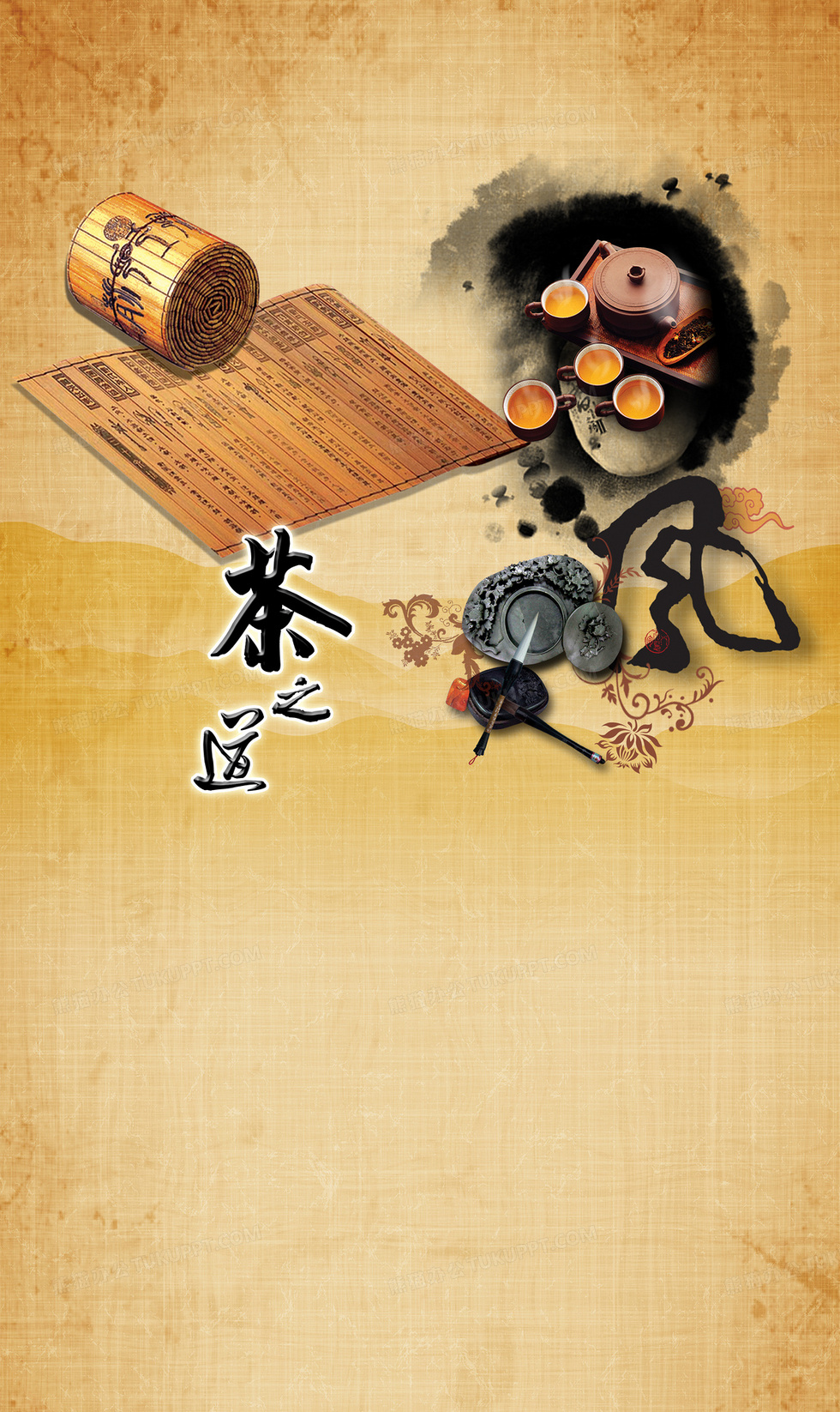 本作品内容为复古棉麻水墨茶之道背景素材, 格式为 psd, 图片尺寸为2953 x 4961, 作品中背景图片无需修改, 源文件无水印,可以直接使用, 欢迎使用熊猫办公。 如认为平台内容涉嫌侵权,可通过邮件:tousu@tukuppt.com提出书面通知,我们将及时处理。