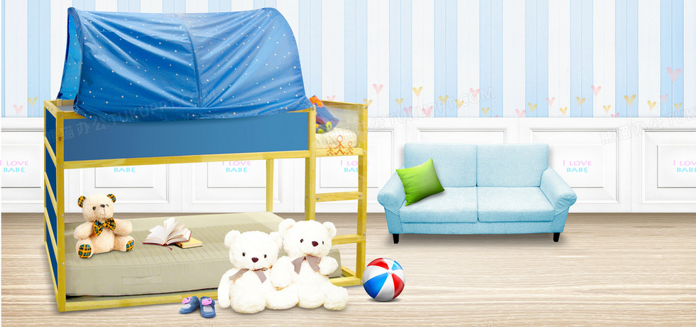 本作品内容为唯美简约儿童小床玩具小熊沙发海报banner, 格式为 psd, 图片尺寸为1920 x 900, 作品中背景图片无需修改, 源文件无水印,可以直接使用, 欢迎使用熊猫办公。 如认为平台内容涉嫌侵权,可通过邮件:tousu@tukuppt.com提出书面通知,我们将及时处理。