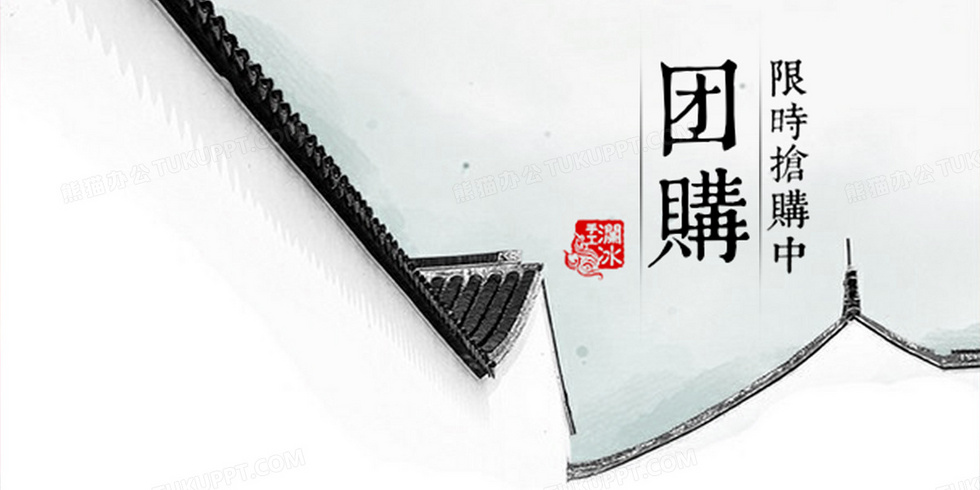 本作品内容为墨水坊设计简约中国风团购海报, 格式为 psd, 图片尺寸为7000 x 3500, 作品中背景图片无需修改, 源文件无水印,可以直接使用, 欢迎使用熊猫办公。 如认为平台内容涉嫌侵权,可通过邮件:tousu@tukuppt.com提出书面通知,我们将及时处理。