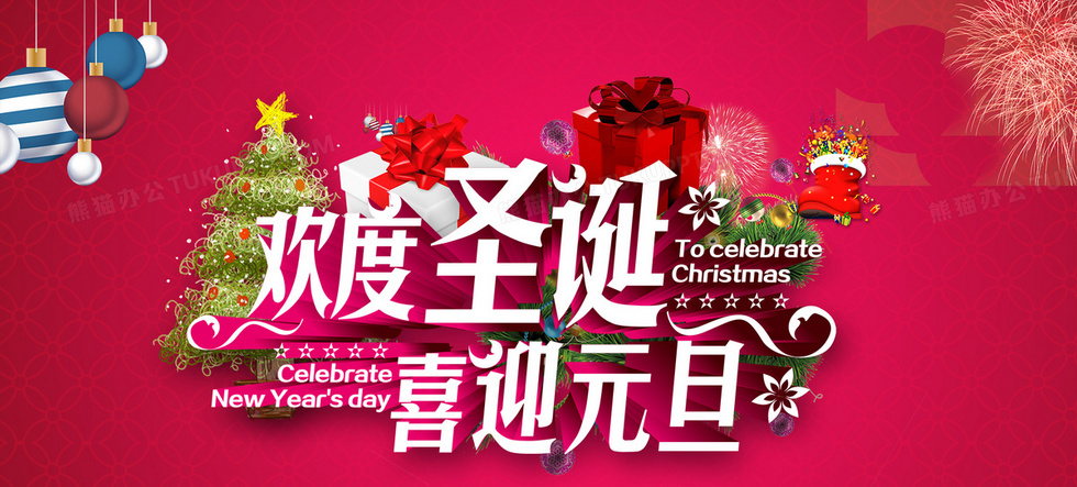 本作品内容为欢度圣诞喜迎元旦, 格式为 psd, 图片尺寸为1920 x 867, 作品中背景图片无需修改, 源文件无水印,可以直接使用, 欢迎使用熊猫办公。 如认为平台内容涉嫌侵权,可通过邮件:tousu@tukuppt.com提出书面通知,我们将及时处理。