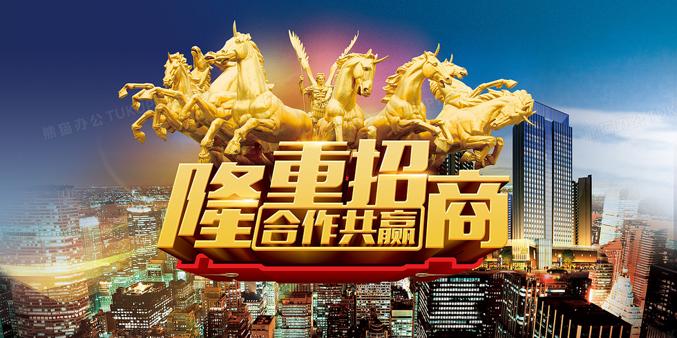 本作品内容为隆重招商背景, 格式为 psd, 图片尺寸为7087 x 3543, 作品中背景图片无需修改, 源文件无水印,可以直接使用, 欢迎使用熊猫办公。 如认为平台内容涉嫌侵权,可通过邮件:tousu@tukuppt.com提出书面通知,我们将及时处理。