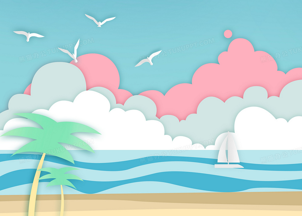 本作品内容为剪纸风海边度假创意背景元素, 格式为 psd, 大小12 MB, 图片尺寸为4961 x 3543, 作品中背景图片无需修改, 源文件无水印,可以直接使用, 欢迎使用熊猫办公。 如认为平台内容涉嫌侵权,可通过邮件:tousu@tukuppt.com提出书面通知,我们将及时处理。