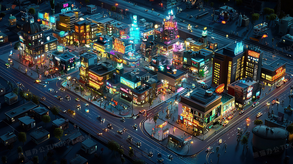 本作品内容为轴测图夜间商务区插画, 格式为 jpg, 大小5 MB, 图片尺寸为2912 x 1632, 源文件无水印, 欢迎使用熊猫办公。 如认为平台内容涉嫌侵权,可通过邮件:tousu@tukuppt.com提出书面通知,我们将及时处理。