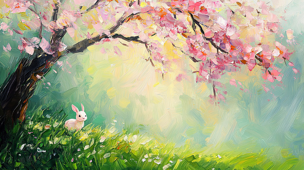 本作品内容为油画风春天樱花树下的兔子插画, 格式为 jpg, 大小5 MB, 图片尺寸为2912 x 1632, 源文件无水印, 欢迎使用熊猫办公。 如认为平台内容涉嫌侵权,可通过邮件:tousu@tukuppt.com提出书面通知,我们将及时处理。