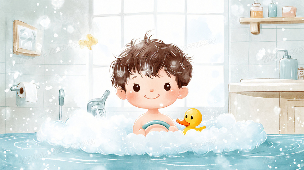 本作品内容为小宝宝在浴缸洗澡插画, 格式为 jpg, 大小5 MB, 图片尺寸为2912 x 1632, 源文件无水印, 欢迎使用熊猫办公。 如认为平台内容涉嫌侵权,可通过邮件:tousu@tukuppt.com提出书面通知,我们将及时处理。