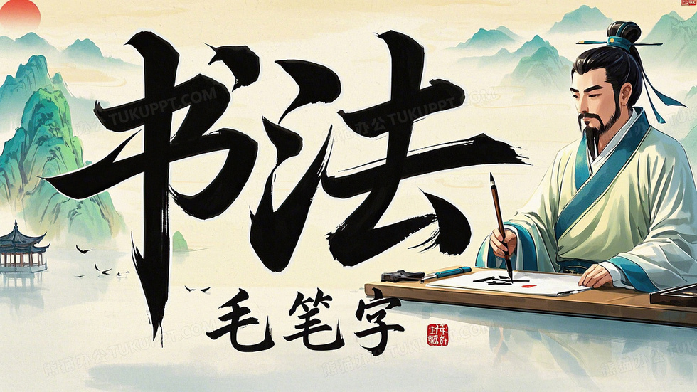 本作品内容为古代人物国学书法传统文化笔墨纸砚插画, 格式为 jpg, 大小5 MB, 图片尺寸为3072 x 1728, 源文件无水印, 欢迎使用熊猫办公。 如认为平台内容涉嫌侵权,可通过邮件:tousu@tukuppt.com提出书面通知,我们将及时处理。
