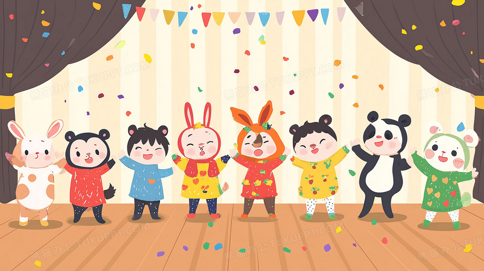本作品内容为舞台儿童节目插画, 格式为 jpg, 大小1 MB, 图片尺寸为2912 x 1632, 源文件无水印, 欢迎使用熊猫办公。 如认为平台内容涉嫌侵权,可通过邮件:tousu@tukuppt.com提出书面通知,我们将及时处理。