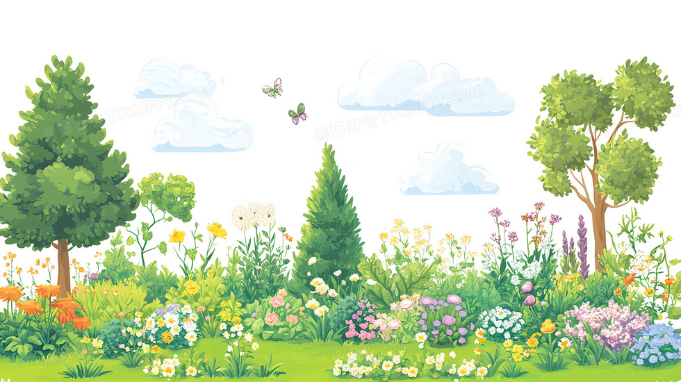 本作品内容为卡通风格春季树林花朵蝴蝶插画, 格式为 jpg, 大小3 MB, 图片尺寸为2912 x 1632, 源文件无水印, 欢迎使用熊猫办公。 如认为平台内容涉嫌侵权,可通过邮件:tousu@tukuppt.com提出书面通知,我们将及时处理。