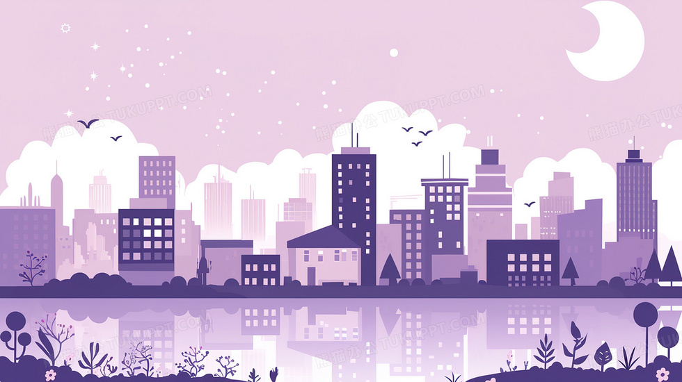 本作品内容为紫色城市建筑剪影远景现代风光建筑插画, 格式为 jpg, 大小2 MB, 图片尺寸为2912 x 1632, 源文件无水印, 欢迎使用熊猫办公。 如认为平台内容涉嫌侵权,可通过邮件:tousu@tukuppt.com提出书面通知,我们将及时处理。