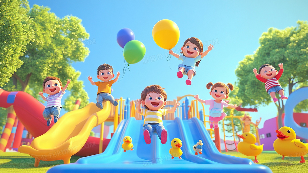 本作品内容为公园小孩滑梯游乐场欢乐玩耍插画, 格式为 jpg, 大小3 MB, 图片尺寸为2912 x 1632, 源文件无水印, 欢迎使用熊猫办公。 如认为平台内容涉嫌侵权,可通过邮件:tousu@tukuppt.com提出书面通知,我们将及时处理。