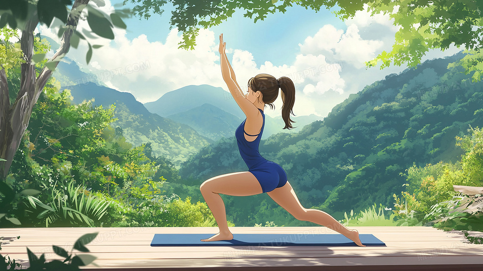 本作品内容为晨练锻炼做瑜伽插画, 格式为 jpg, 大小1 MB, 图片尺寸为2912 x 1632, 源文件无水印, 欢迎使用熊猫办公。 如认为平台内容涉嫌侵权,可通过邮件:tousu@tukuppt.com提出书面通知,我们将及时处理。