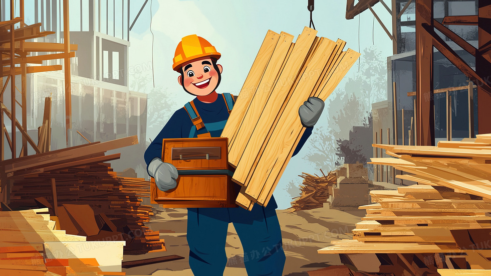 首页 > 插画 > 科技艺术 > 卡通漫画 > 建筑工地搬木头的建筑工人插画