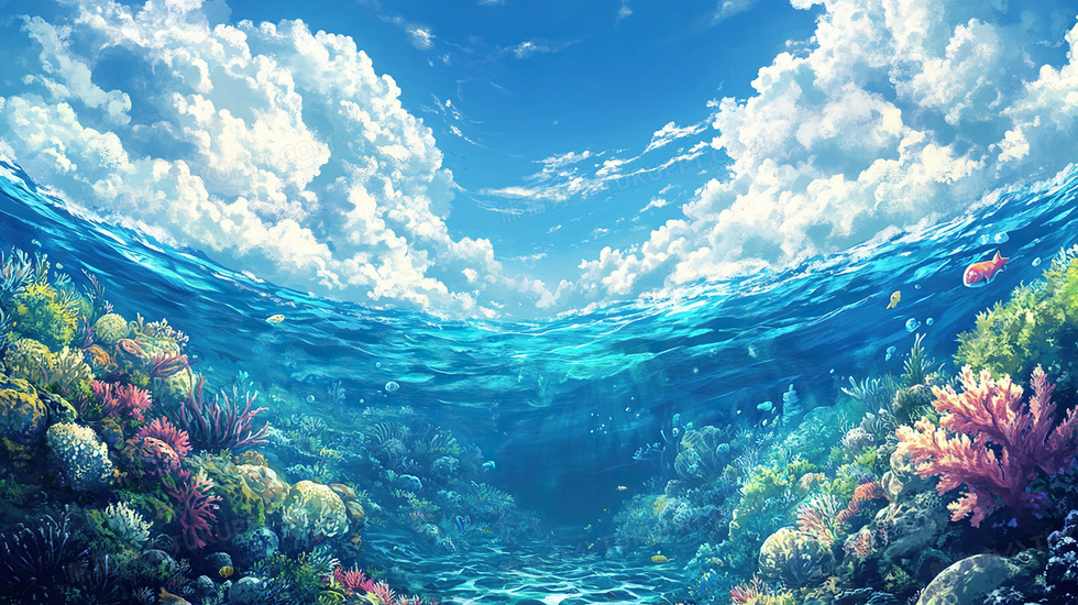 首页 > 背景图库 > 科技艺术 > 海报banner > 珊瑚水草深海大海海底风景背景