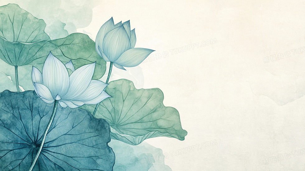 本作品内容为中国风水彩荷花文艺植物背景, 格式为 jpg, 大小4 MB, 图片尺寸为2912 x 1632, 作品中背景图片无需修改, 源文件无水印,可以直接使用, 欢迎使用熊猫办公。 如认为平台内容涉嫌侵权,可通过邮件:tousu@tukuppt.com提出书面通知,我们将及时处理。