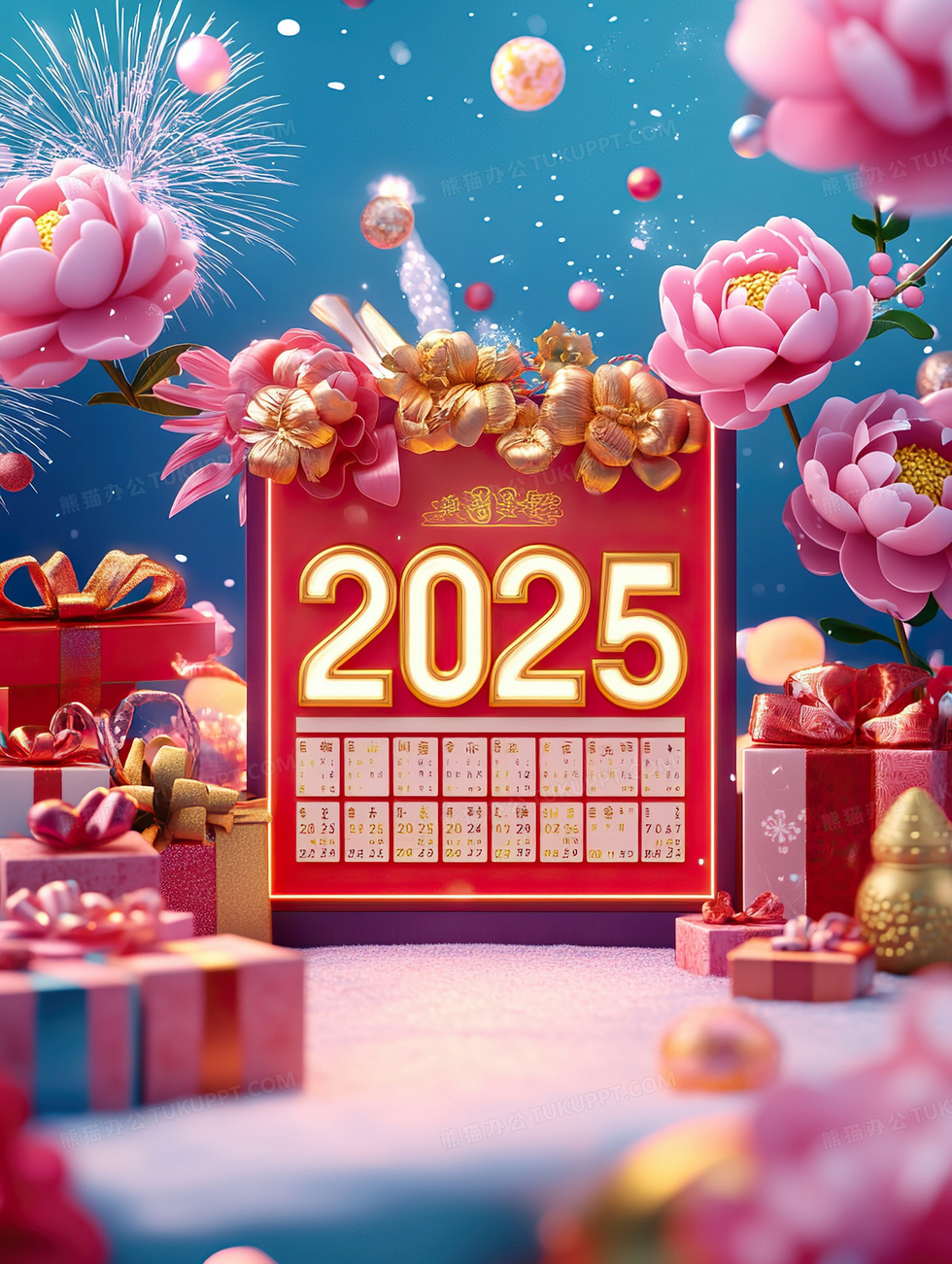 本作品内容为2025新年元旦台历插画, 格式为 jpg, 大小3 MB, 图片尺寸为1856 x 2464, 源文件无水印, 欢迎使用熊猫办公。 如认为平台内容涉嫌侵权,可通过邮件:tousu@tukuppt.com提出书面通知,我们将及时处理。