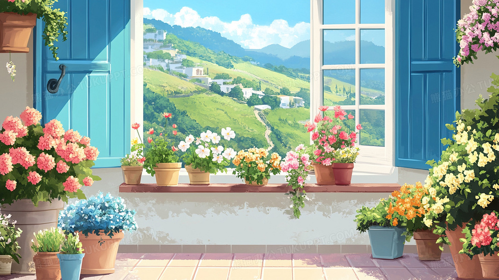本作品内容为阳光窗台盆栽门窗风景建筑插画, 格式为 jpg, 大小3 MB, 图片尺寸为2912 x 1632, 源文件无水印, 欢迎使用熊猫办公。 如认为平台内容涉嫌侵权,可通过邮件:tousu@tukuppt.com提出书面通知,我们将及时处理。