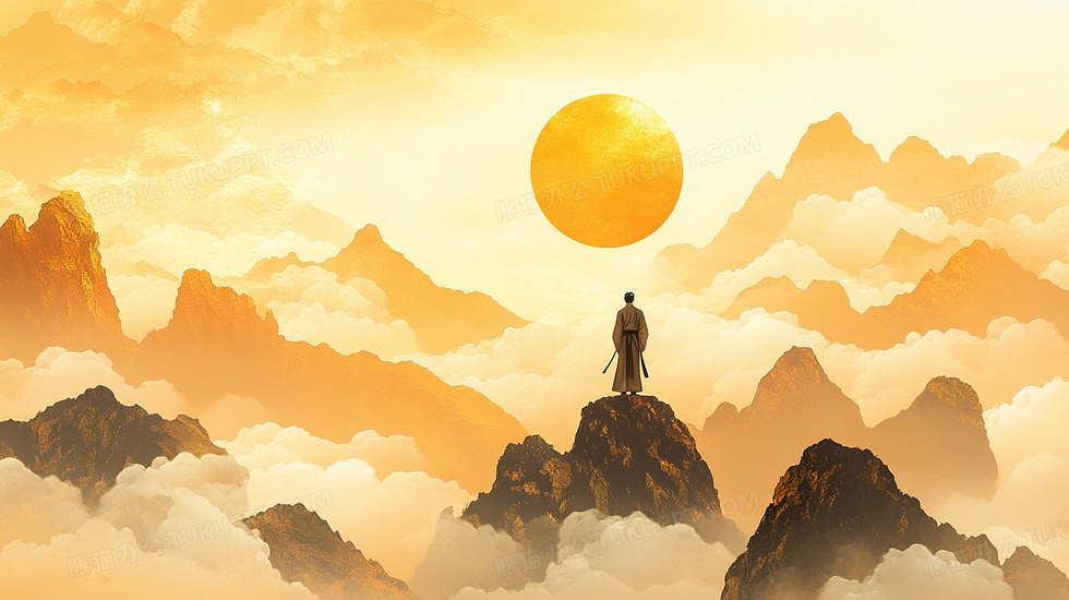 本作品内容为太阳背影 烫金中国风山水插画, 格式为 jpg, 大小3 MB, 图片尺寸为2912 x 1632, 源文件无水印, 欢迎使用熊猫办公。 如认为平台内容涉嫌侵权,可通过邮件:tousu@tukuppt.com提出书面通知,我们将及时处理。