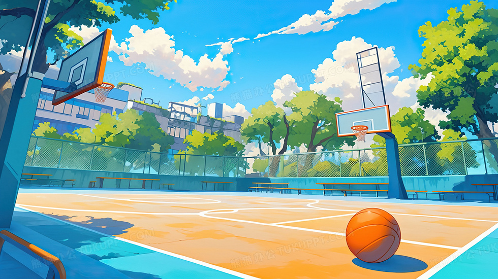 本作品内容为学校操场中的篮球场插画, 格式为 jpg, 大小4 MB, 图片尺寸为2912 x 1632, 源文件无水印, 欢迎使用熊猫办公。 如认为平台内容涉嫌侵权,可通过邮件:tousu@tukuppt.com提出书面通知,我们将及时处理。