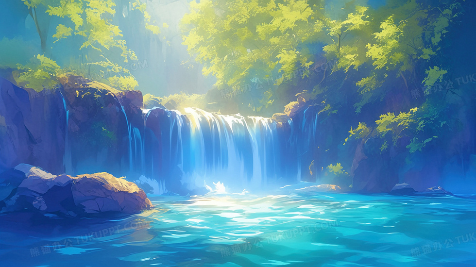 本作品内容为唯美大自然瀑布景色天空云层插画, 格式为 jpg, 大小3 MB, 图片尺寸为2912 x 1632, 源文件无水印, 欢迎使用熊猫办公。 如认为平台内容涉嫌侵权,可通过邮件:tousu@tukuppt.com提出书面通知,我们将及时处理。
