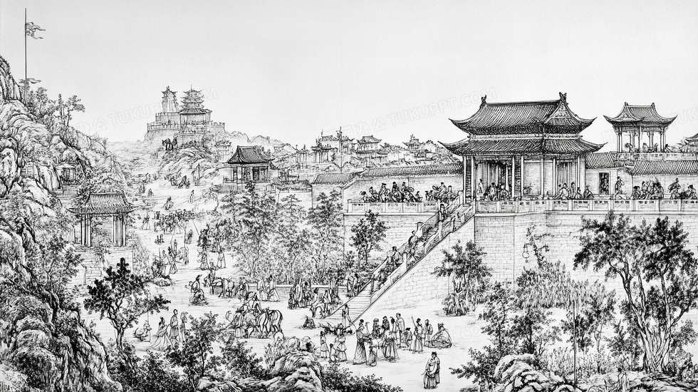 本作品内容为中国风建筑树林白描手绘风景插画, 格式为 jpg, 大小5 MB, 图片尺寸为2912 x 1632, 源文件无水印, 欢迎使用熊猫办公。 如认为平台内容涉嫌侵权,可通过邮件:tousu@tukuppt.com提出书面通知,我们将及时处理。