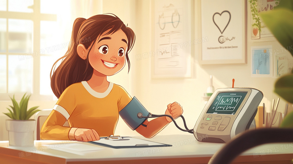 本作品内容为女孩子在房间里测量血压卡通插画, 格式为 jpg, 大小3 MB, 图片尺寸为2912 x 1632, 源文件无水印, 欢迎使用熊猫办公。 如认为平台内容涉嫌侵权,可通过邮件:tousu@tukuppt.com提出书面通知,我们将及时处理。