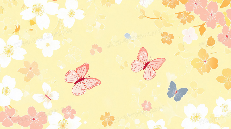 本作品内容为小清新蝴蝶花卉底纹纹理背景, 格式为 jpg, 大小2 MB, 图片尺寸为2912 x 1632, 作品中背景图片无需修改, 源文件无水印,可以直接使用, 欢迎使用熊猫办公。 如认为平台内容涉嫌侵权,可通过邮件:tousu@tukuppt.com提出书面通知,我们将及时处理。