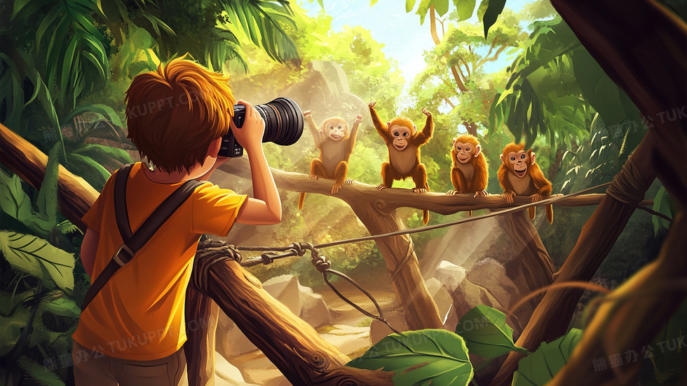 本作品内容为动物园内男孩拿着相机拍摄动物猴子插画, 格式为 jpg, 大小3 MB, 图片尺寸为2912 x 1632, 源文件无水印, 欢迎使用熊猫办公。 如认为平台内容涉嫌侵权,可通过邮件:tousu@tukuppt.com提出书面通知,我们将及时处理。