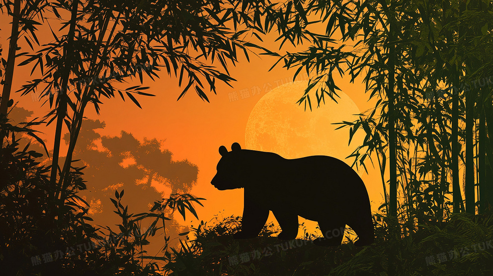 本作品内容为剪影风竹林里的棕熊插画, 格式为 jpg, 大小4 MB, 图片尺寸为2912 x 1632, 源文件无水印, 欢迎使用熊猫办公。 如认为平台内容涉嫌侵权,可通过邮件:tousu@tukuppt.com提出书面通知,我们将及时处理。
