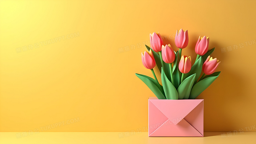 本作品内容为黄底简约鲜花郁金香和信封背景, 格式为 jpg, 大小4 MB, 图片尺寸为3072 x 1728, 作品中背景图片无需修改, 源文件无水印,可以直接使用, 欢迎使用熊猫办公。 如认为平台内容涉嫌侵权,可通过邮件:tousu@tukuppt.com提出书面通知,我们将及时处理。