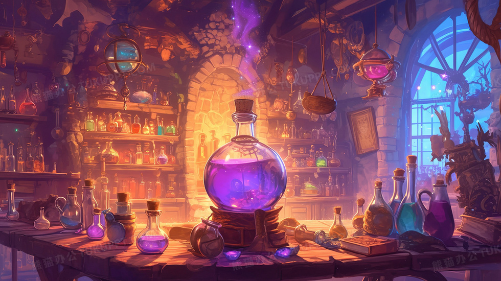 本作品内容为彩色魔法药水插画, 格式为 jpg, 大小3 MB, 图片尺寸为2912 x 1632, 源文件无水印, 欢迎使用熊猫办公。 如认为平台内容涉嫌侵权,可通过邮件:tousu@tukuppt.com提出书面通知,我们将及时处理。