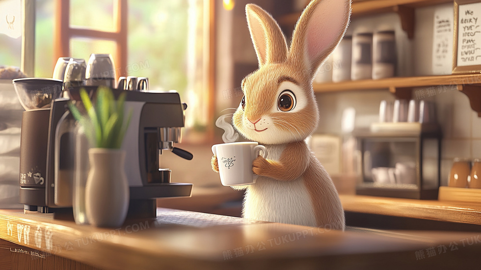本作品内容为咖啡店内做咖啡的兔子职员插画, 格式为 jpg, 大小3 MB, 图片尺寸为2912 x 1632, 源文件无水印, 欢迎使用熊猫办公。 如认为平台内容涉嫌侵权,可通过邮件:tousu@tukuppt.com提出书面通知,我们将及时处理。