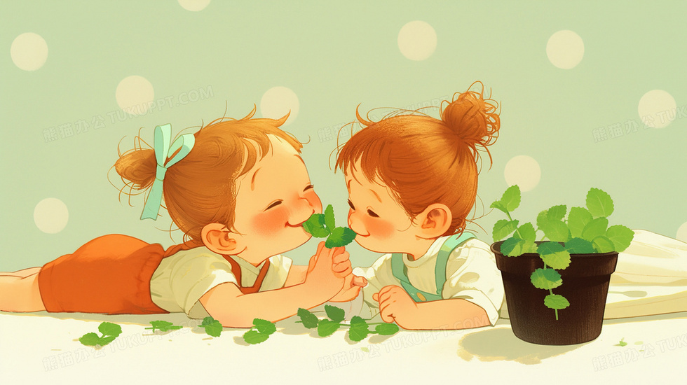 本作品内容为趴在地上的卡通儿童与绿植插画, 格式为 jpg, 大小2 MB, 图片尺寸为2912 x 1632, 源文件无水印, 欢迎使用熊猫办公。 如认为平台内容涉嫌侵权,可通过邮件:tousu@tukuppt.com提出书面通知,我们将及时处理。