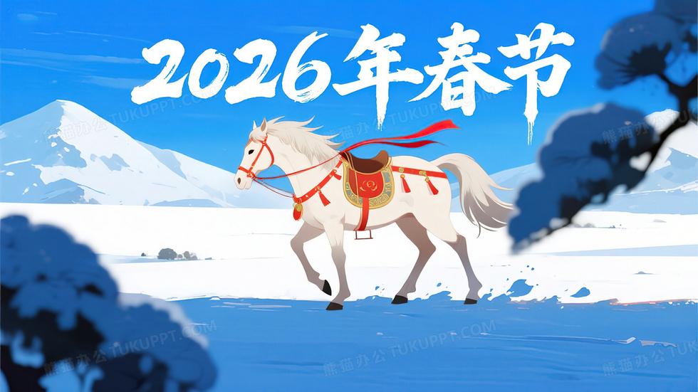 本作品内容为寒冬骏马春节喜庆马年插画, 格式为 jpg, 大小6 MB, 图片尺寸为3328 x 1872, 源文件无水印, 欢迎使用熊猫办公。 如认为平台内容涉嫌侵权,可通过邮件:tousu@tukuppt.com提出书面通知,我们将及时处理。