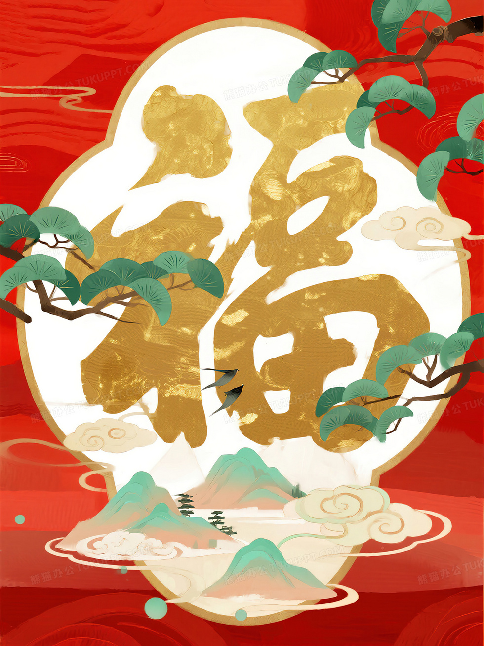本作品内容为鎏金毛笔字福字创意插画, 格式为 jpg, 大小14 MB, 图片尺寸为3456 x 4608, 源文件无水印, 欢迎使用熊猫办公。 如认为平台内容涉嫌侵权,可通过邮件:tousu@tukuppt.com提出书面通知,我们将及时处理。