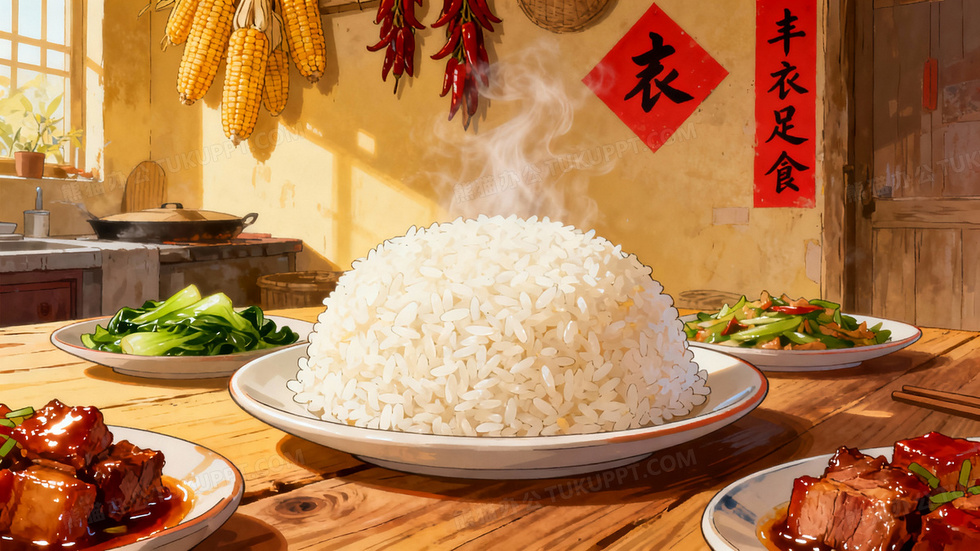 本作品内容为大米饭丰衣足食背景图片, 格式为 jpg, 大小2 MB, 图片尺寸为2560 x 1440, 作品中背景图片无需修改, 源文件无水印,可以直接使用, 欢迎使用熊猫办公。 如认为平台内容涉嫌侵权,可通过邮件:tousu@tukuppt.com提出书面通知,我们将及时处理。