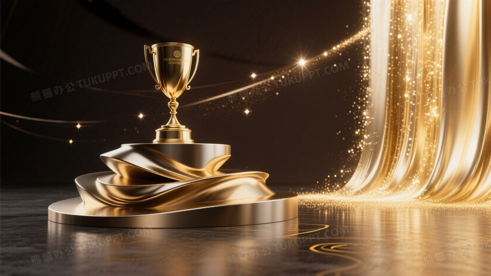 本作品内容为高端品牌发布会背景OC渲染深棕淡金奖杯, 格式为 jpg, 大小1 MB, 图片尺寸为1664 x 936, 作品中背景图片无需修改, 源文件无水印,可以直接使用, 欢迎使用熊猫办公。 如认为平台内容涉嫌侵权,可通过邮件:tousu@tukuppt.com提出书面通知,我们将及时处理。