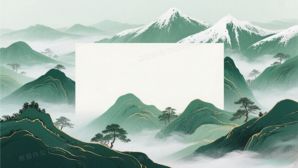 本作品内容为国风青绿山水画风主体是层叠的山峦, 格式为 jpg, 大小1 MB, 图片尺寸为1664 x 936, 作品中背景图片无需修改, 源文件无水印,可以直接使用, 欢迎使用熊猫办公。 如认为平台内容涉嫌侵权,可通过邮件:tousu@tukuppt.com提出书面通知,我们将及时处理。