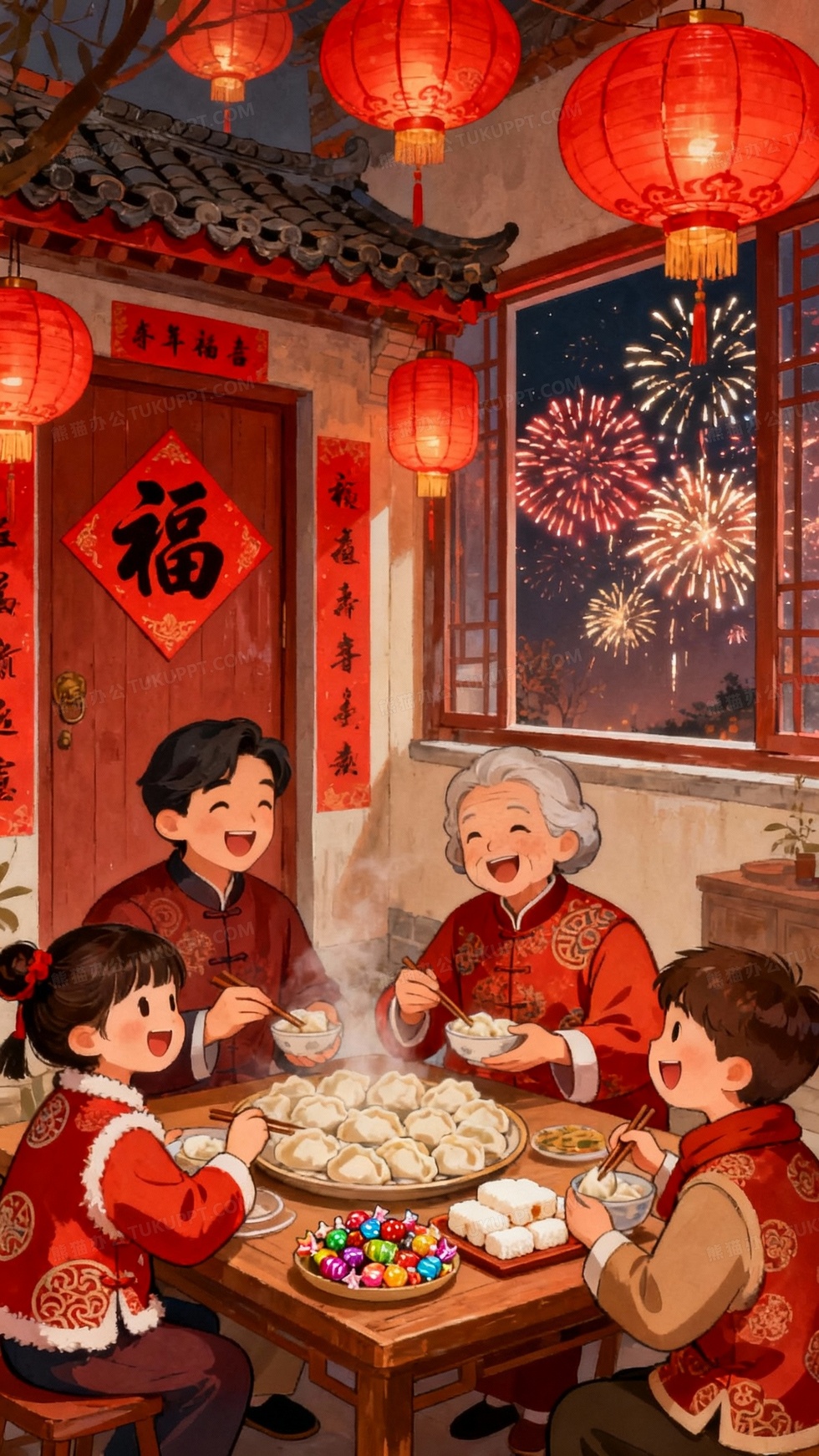 本作品内容为品年味过新年插画, 格式为 jpg, 大小2 MB, 图片尺寸为1440 x 2560, 源文件无水印, 欢迎使用熊猫办公。 如认为平台内容涉嫌侵权,可通过邮件:tousu@tukuppt.com提出书面通知,我们将及时处理。