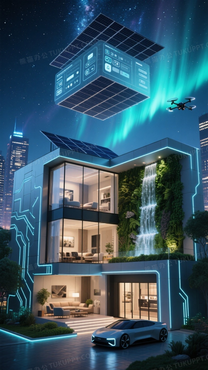 本作品内容为科技感十足的现代豪宅, 格式为 jpg, 大小1 MB, 图片尺寸为936 x 1664, 源文件无水印, 欢迎使用熊猫办公。 如认为平台内容涉嫌侵权,可通过邮件:tousu@tukuppt.com提出书面通知,我们将及时处理。